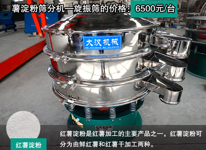 紅薯淀粉是紅薯加工的主要產(chǎn)品之一,紅薯淀粉可分為由鮮紅薯和紅薯干加工兩種。紅薯淀粉其還有減肥的作用,那么紅薯淀粉篩分機—旋振篩的價格是多少呢?小編為你提供做真實的答案薯淀粉篩分機—旋振篩的價格:6500元/臺