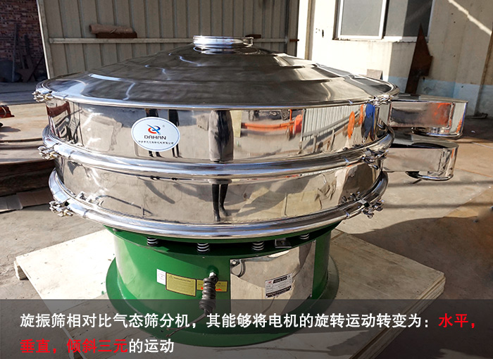 旋振篩相對比氣態(tài)篩分機,其能夠?qū)㈦姍C的旋轉(zhuǎn)運動轉(zhuǎn)變?yōu)椋?span style="color:#ff8c00;">水平,垂直,傾斜三元的運動。其不僅提高了篩網(wǎng)的利用率而且,調(diào)節(jié)上,下兩端的相位角,使得物料在篩網(wǎng)上的運動軌跡發(fā)生變化,從而使紅薯淀粉可以進行更加精細的篩分。